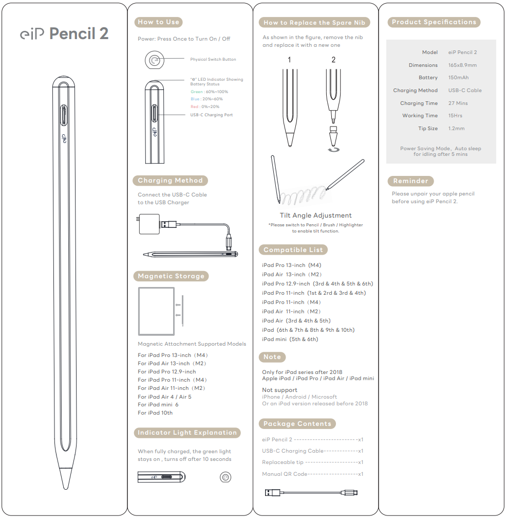 Before first use, please charge Pencil for 10 minutes.