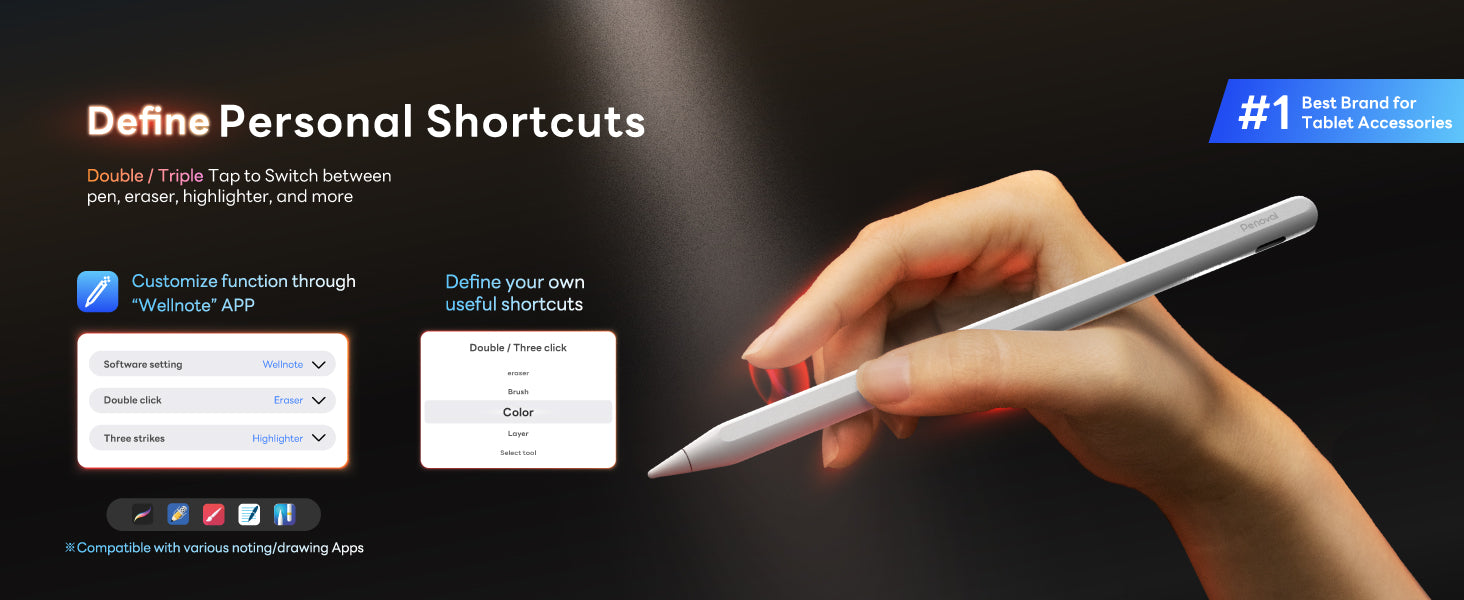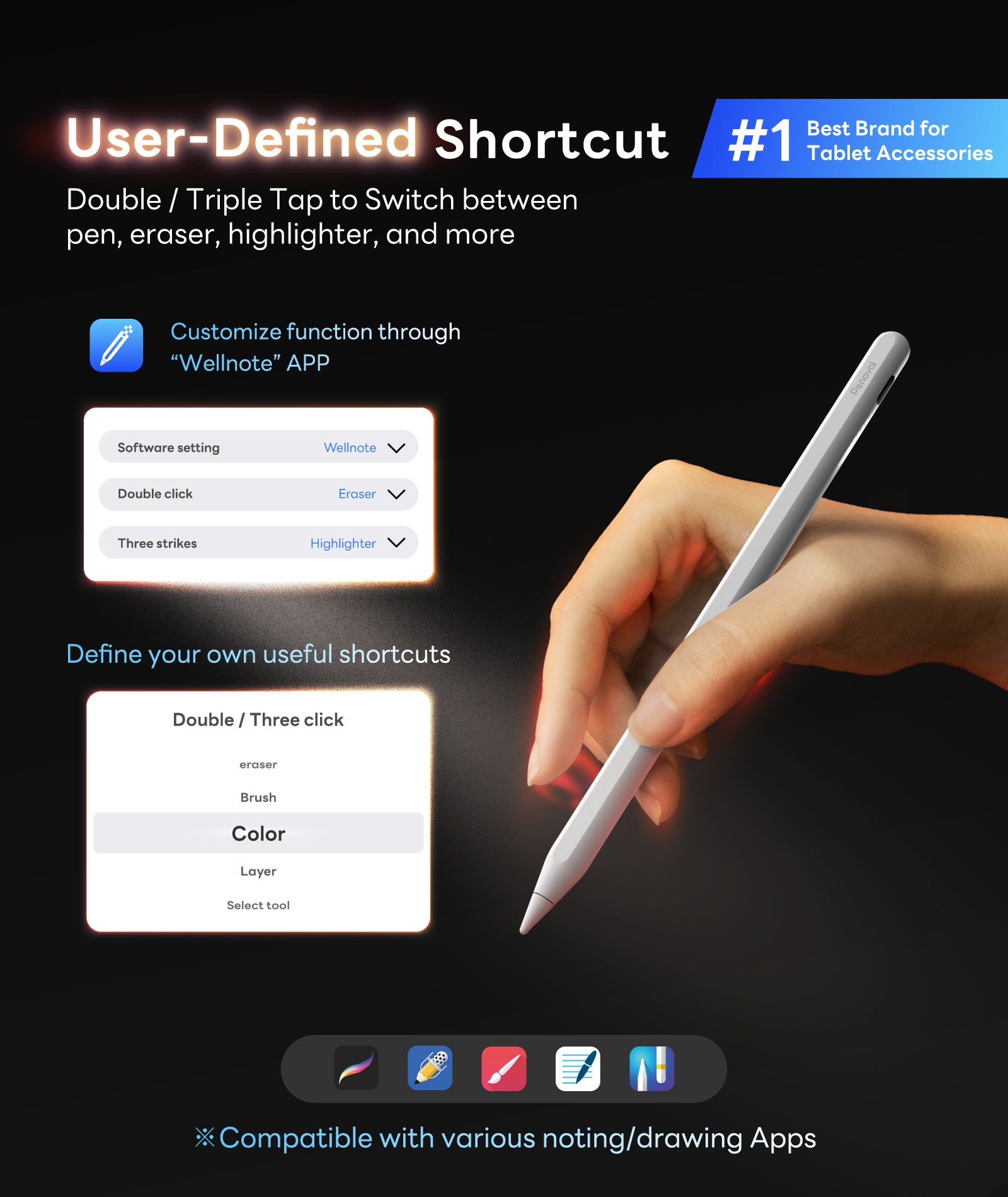 - ✍️ Eraser Switch, Lasso, and Highlighter: Just like the Apple Pencil 2 and Pro, double-tap and triple-tap to switch between useful tools like eraser, lasso, and more.