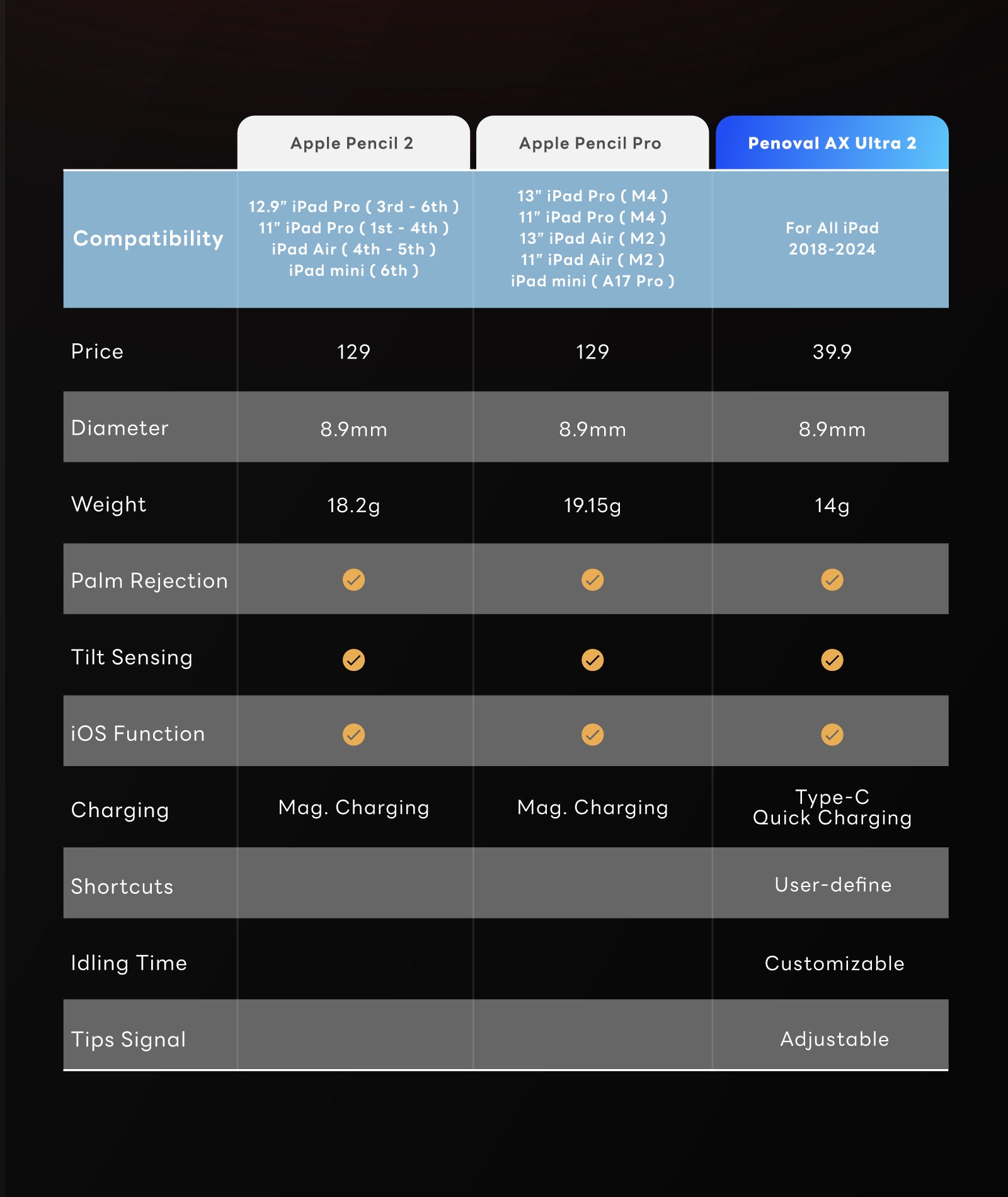 - 🎨 Real-time Power, Pixel Precision, Palm Rejection, and Tilt Sensitivity: Everything you’d expect from another third-party stylus—our stylus includes all these features.