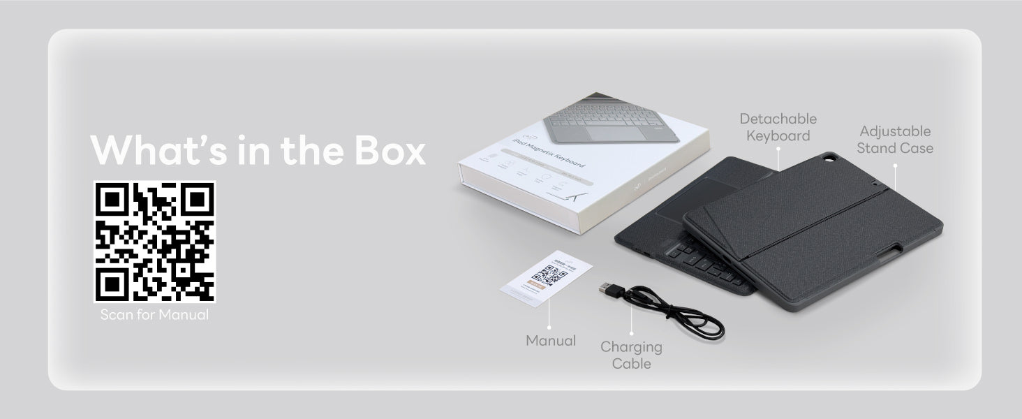 - š§²ćMAGNETIC DETACHABLE KEYBOARDć- eiP iPad keyboard case securely attaches to the protective case using a strong magnetic strip. You can detach and store the keyboard separately, leaving the case and back stand. This setup allows you to place the iPad on your lap for reading, watching videos, or drawing. Switching between iPad and Laptop modes becomes effortless.