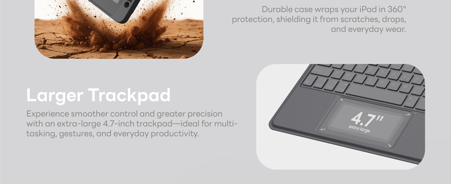 - š 20% Larger Trackpad - Enjoy a 20% larger trackpad, measuring 4.7 inches compared to the others 3.7 inches, delivering a true laptop-like experience. Use multi-gesture controls to switch apps, scroll, zoom, and navigate with ease.
