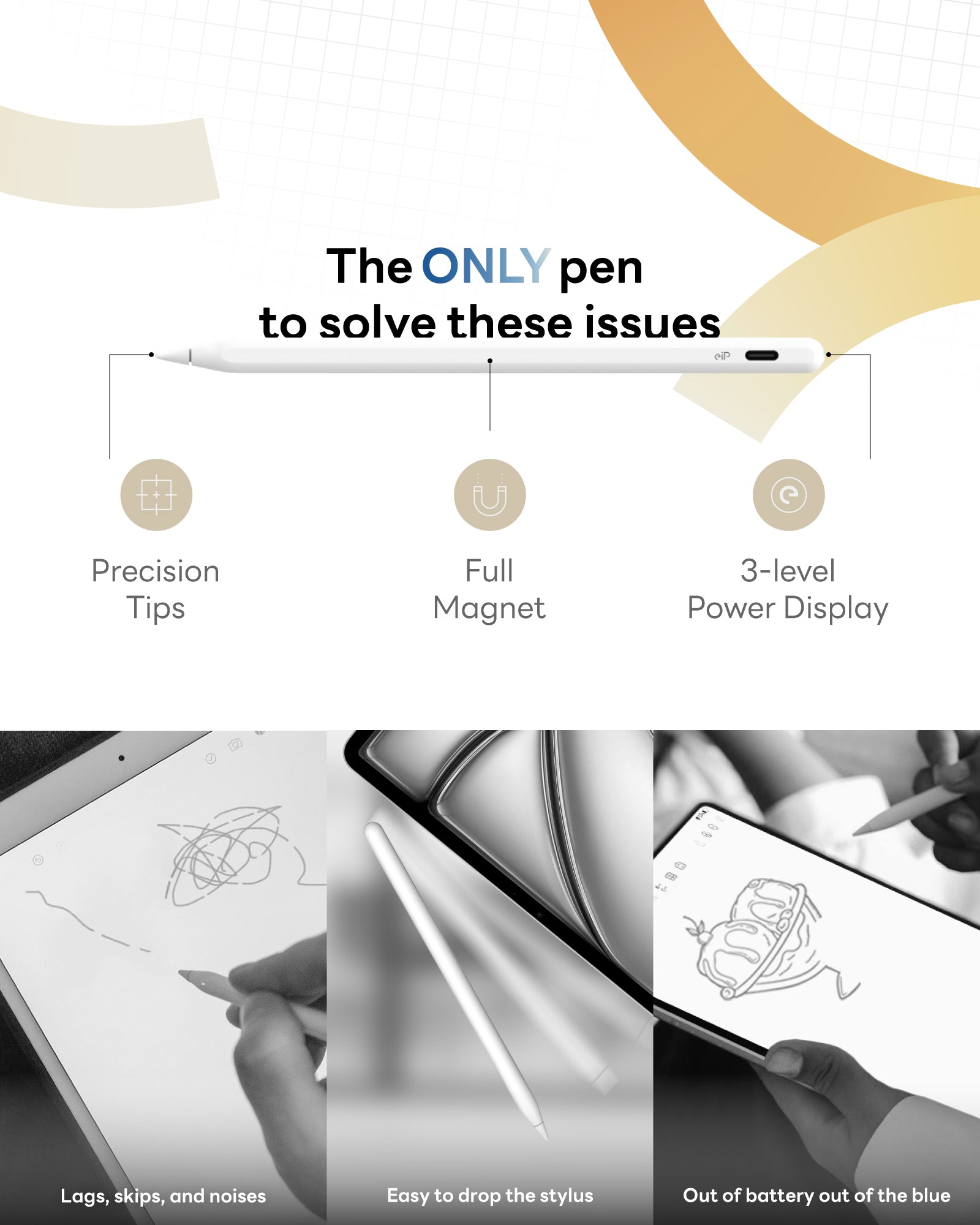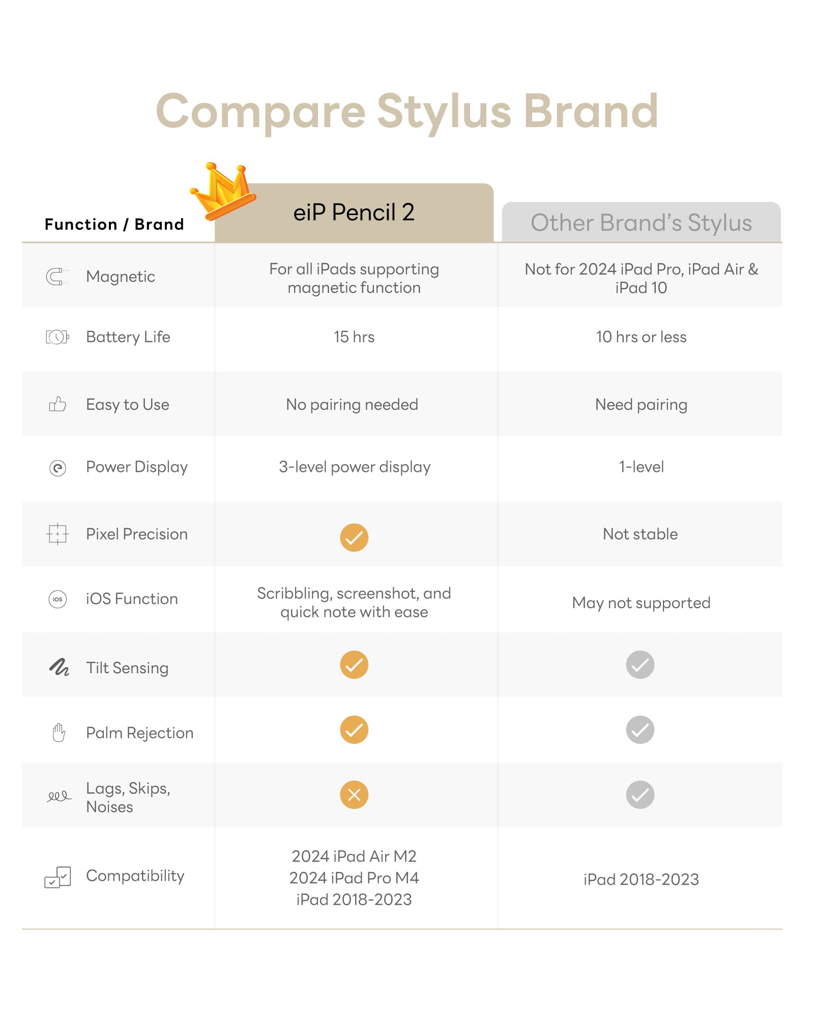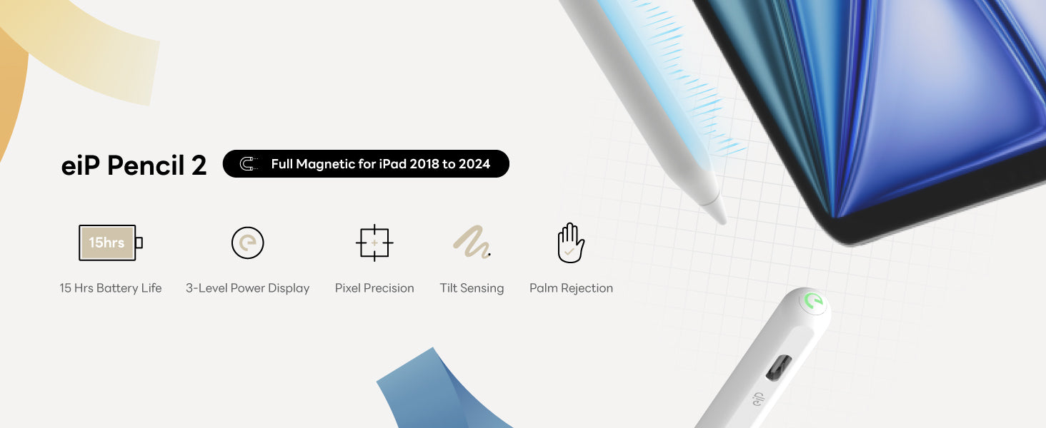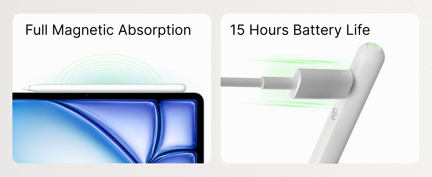 ✅Exclusive Full Magnetic Design: Engineered for the new 2024 iPad Pro M4 and iPad Air M2, the eiP stylus features a full magnetic array. Easily attach and carry it with any magnetically compatible iPad from 2018-2024.