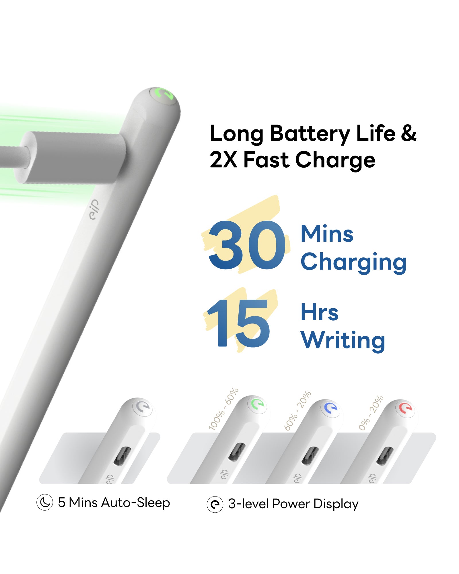 📦What's in the Box?: Includes eiP Pencil 2, replacement tips, type-c cable, and manual.