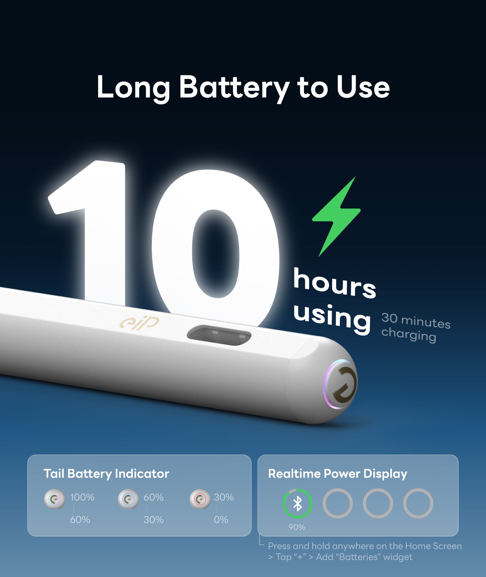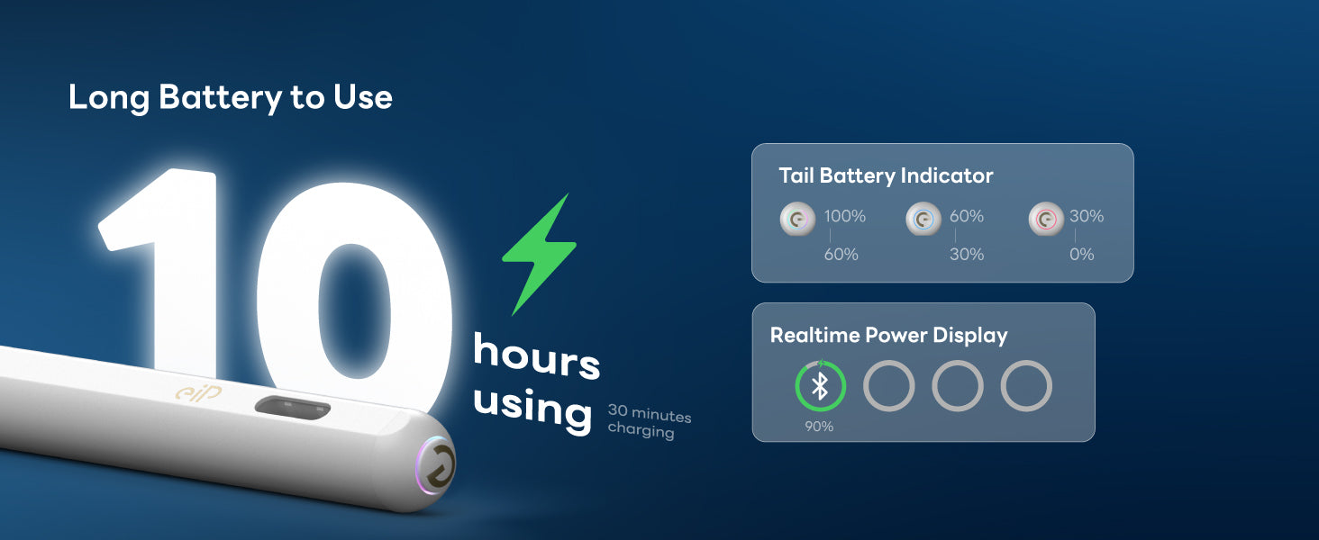- 🔋10-Hour Battery + Real-Time Power: With type-c fast charging, a 30-minute charge provides 10 hours of use. Includes a 3-level battery indicator to prevent unexpected power loss. You can also view real-time battery status in the iPad Batteries widget and the “eiP” app.