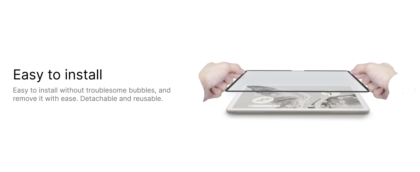 ✅REMOVABLE AND REUSABLE - Using “Nano Attachment Tech”, the screen protector adheres to the tablet screen securely without any metal or magnet. It can be easily removed and reused.