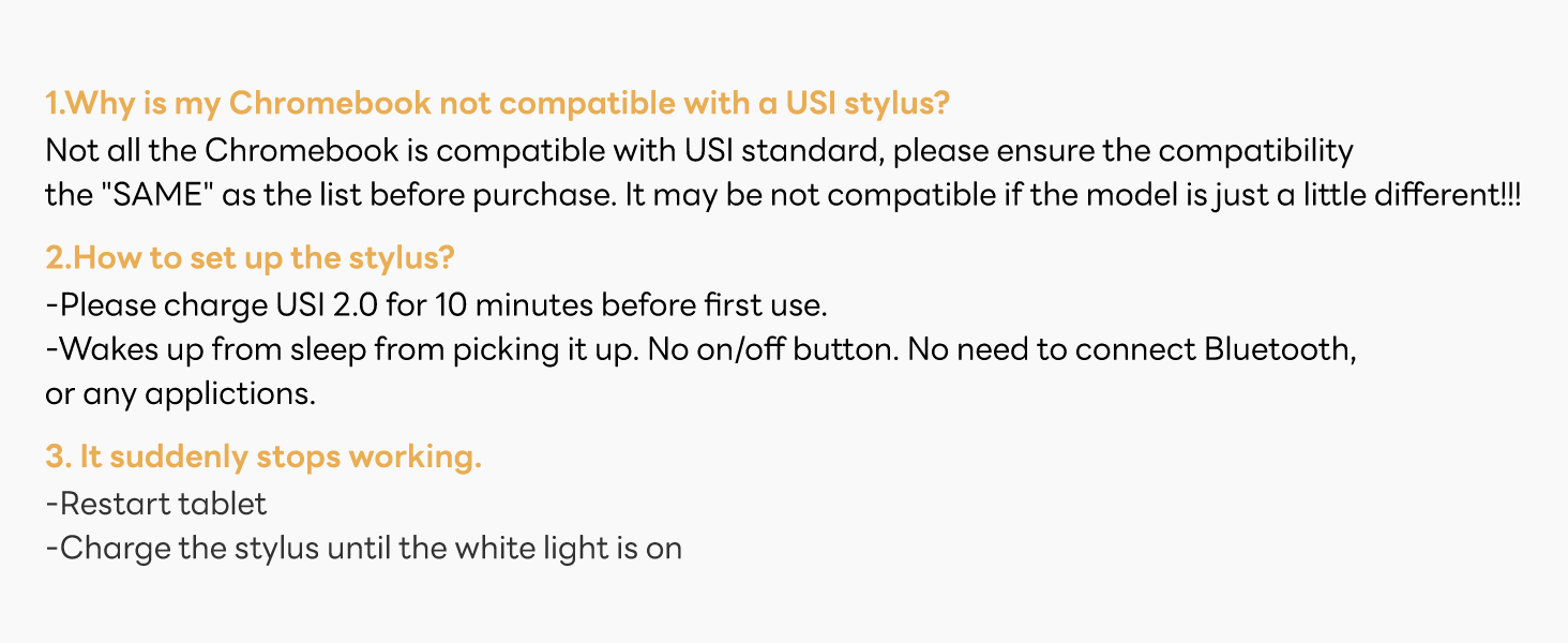 ⚠️Not all Chromebooks supports USI 2.0 Stylus. It’s only for certain Lenovo, Acer, HP, ASUS model. Please check the compatible list in on product description.